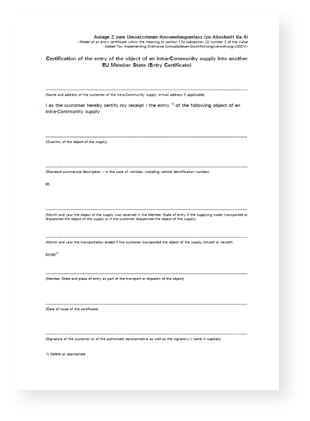 Gelangensbestätigung